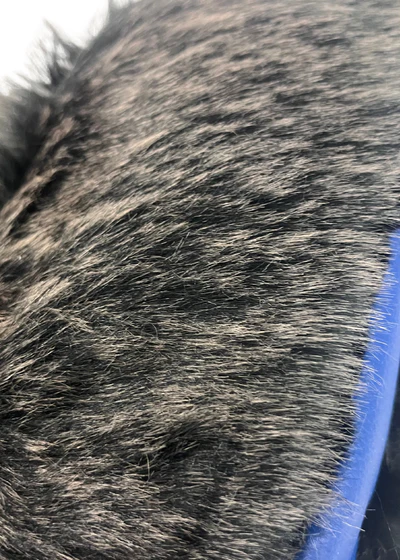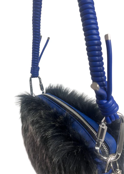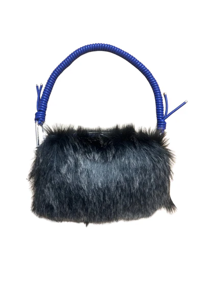 Cuerpo del bolso: Base de polipiel de alta calidad. Tejido exterior: Pelo sintético de fibra larga (100% poliéster). Asas: Estructura técnica trenzada. Detalles: Herrajes metálicos y tirador personalizado.