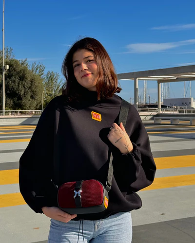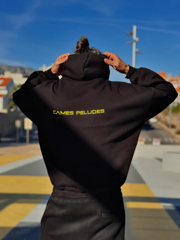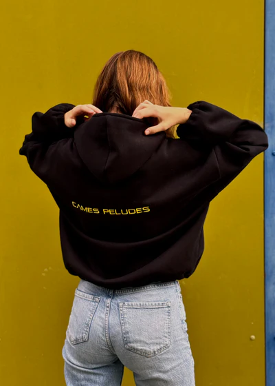 Con la etiqueta de Cames Peludes que se presenta de manera destacada en la parte delantera, añadiendo un cuello diferente que aporta mucho estilo. Cuenta con un bordado fucsia en la parte trasera que aporta calidad y sencillez.