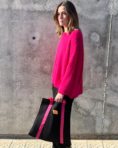 El bolso presenta un diseño bicolor que añade un toque moderno y llamativo. Sumérgete en la moda con nuestro bolso negro y asa fucsia. Una combinación audaz que fusiona la elegancia atemporal con un toque vibrante. Este accesorio versátil no solo realza tu estilo, sino que también agrega un toque de energía a tus conjuntos. Desde la oficina hasta la noche, este bolso es la declaración perfecta de moda con una dosis de diversión.