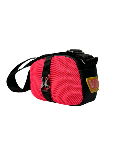 Materiales: Las dos caras del bolso están adornadas con un patrón de tejido 3D fucsia de alta calidad, mientras que el contorno está finamente acabado con polipiel negra. En su interior, está revestido con un suave forro negro de algodón.
