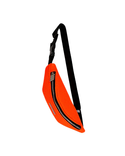 Materiales: La riñonera está adornada con un patrón de tejido 3D naranja de alta calidad. En su interior, está revestido con un suave forro negro de algodón.