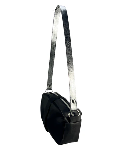 Medidas: El bolso “Sisyphos” está equipado con una tira de piel sintética plateada, de 73 cm de longitud, que te permite llevarlo cómodamente sobre el hombro. Con unas medidas de 22 cm de largo, 13 cm de alto y 6 cm de ancho.