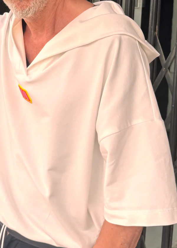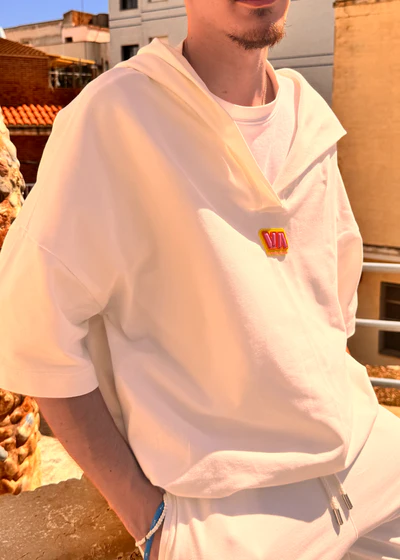 Con la etiqueta de Cames Peludes que se presenta de manera destacada en la parte delantera, añadiendo un cuello diferente con un escote de pico que aporta mucho estilo.